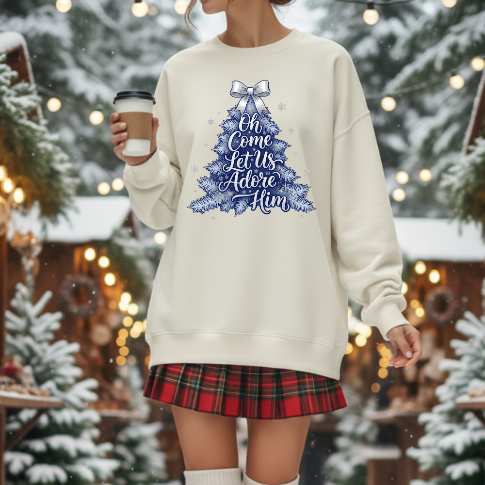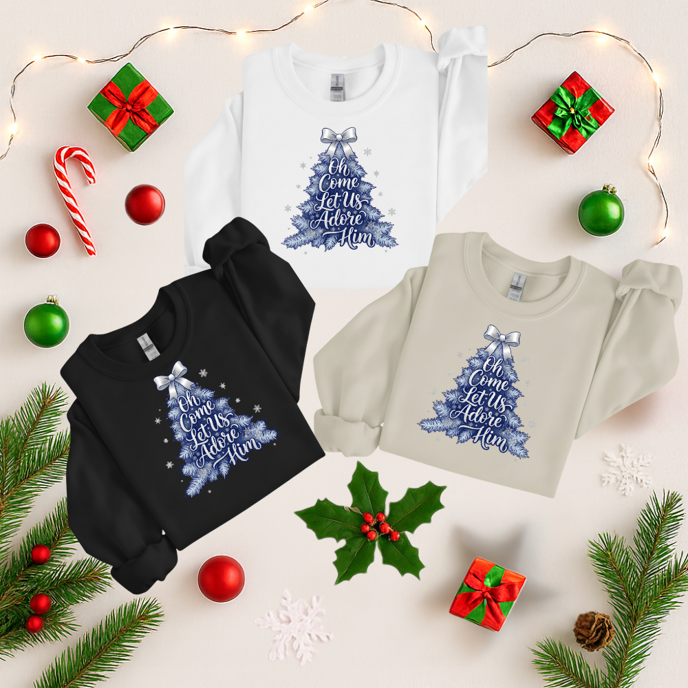 Product Name: “Oh Come Let Us Adore Him” Christmas Sweatshirt